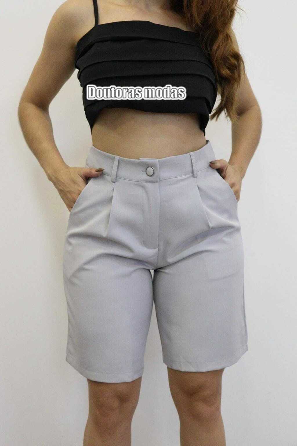 Doutoras Modas Bermuda Feminina Luis Twill Verão Cintura Alta Elegante Moderna Moda Casual LT135