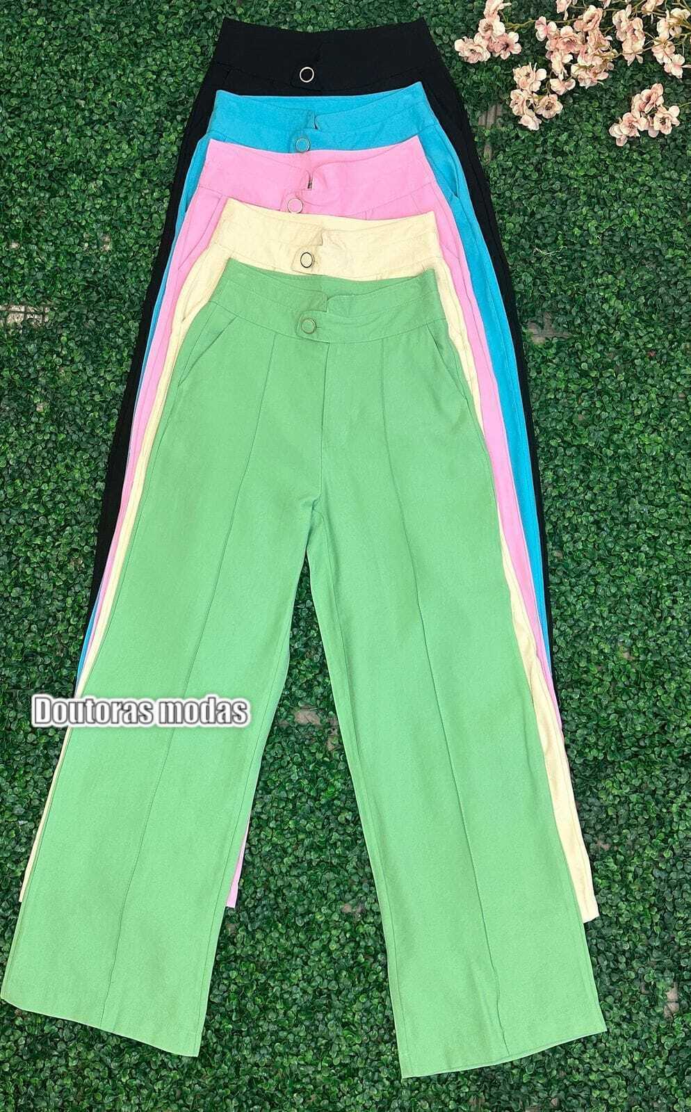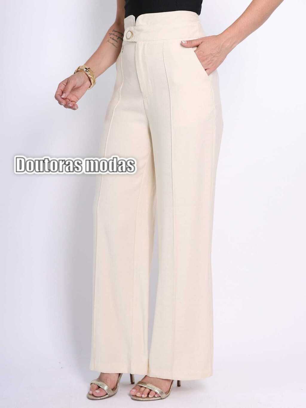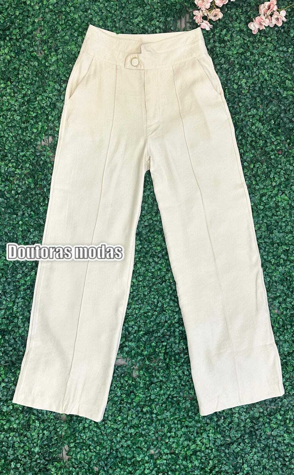 Doutoras Modas Calça Pantalona Tecido Amarante Bolsos Laterais Cintura Alta 219