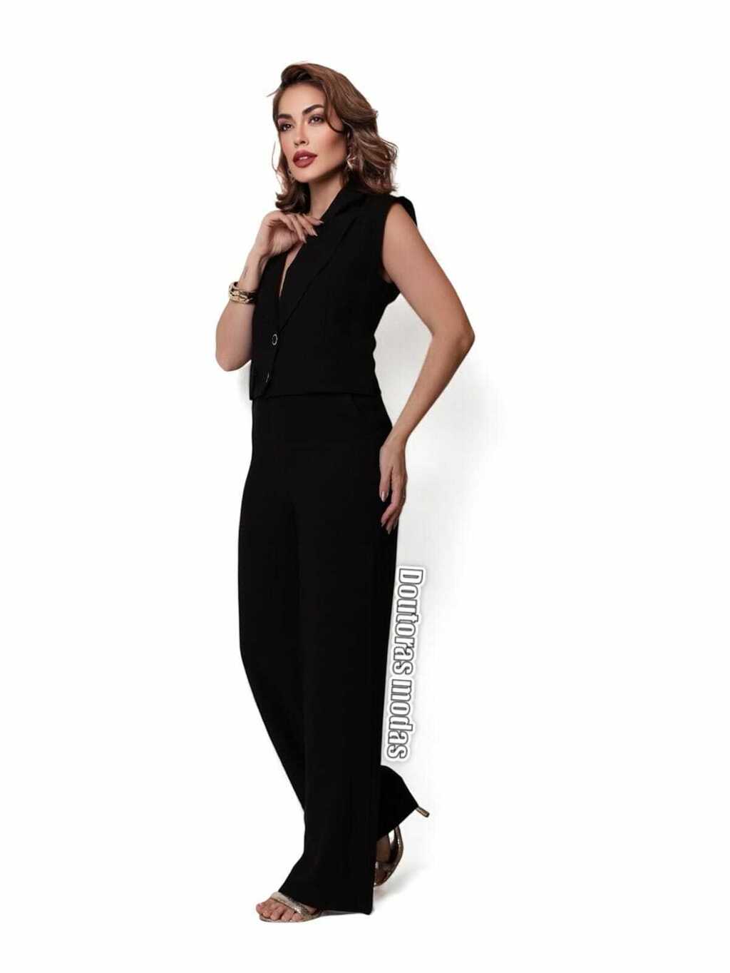Domi Modas Conjunto Feminino Amarante Colete com Bolsos Fake Calça Cintura Alta 86800